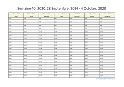 Ce calendrier planning mensuel présente chaque jour de la semaine sur la même ligne, et chaque semaine les.